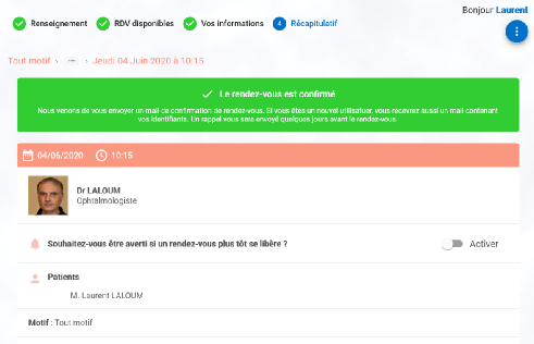 Si vous avez un doute, vous pourrez vérifier en vous connectant à votre compte patient ici .
